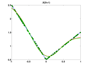 you meant “x-axis indicate the input x………and red curve indicates the approximate function….” but you wrote “green curve” instead of “red curve”!